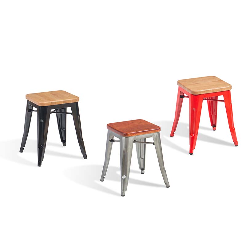 Pour les magasins de meubles et les distributeurs, le “meilleur vendeur” est souvent le plus facile à maintenir : châssis en métal peint par poudrage + sièges en PU/vinyle pour un nettoyage rapide. Les sièges en bois ont un aspect haut de gamme, mais vous voudrez une finition scellée qui résiste aux nettoyages quotidiens.